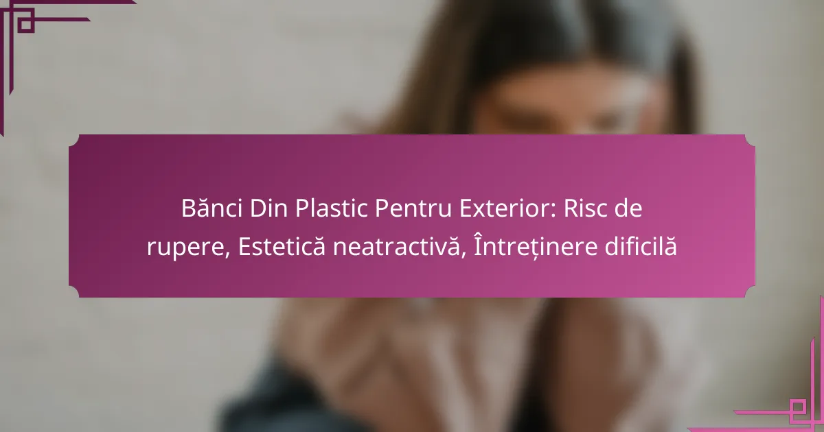 Băncile din plastic pentru exterior pot fi o alegere practică, dar vin cu riscuri semnificative, cum ar fi ruperea în condiții extreme și deteriorarea din cauza expunerii la temperaturi ridicate.…